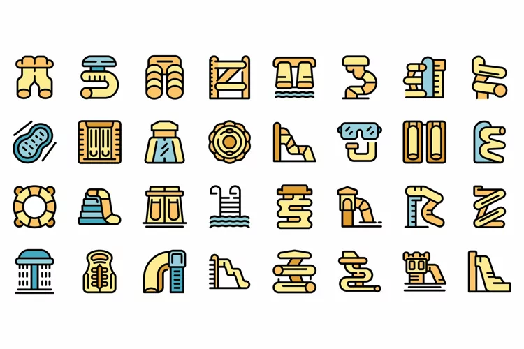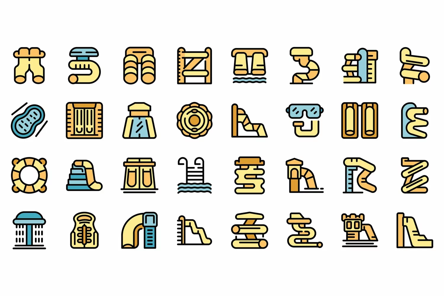 Line Thin Flat Vector Outline Color Icons Set Isolated Aquaparkslide