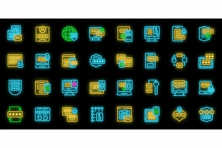 Line Thin Vector Outline Neon Icons Set Isolated Password Multifactorauthentication