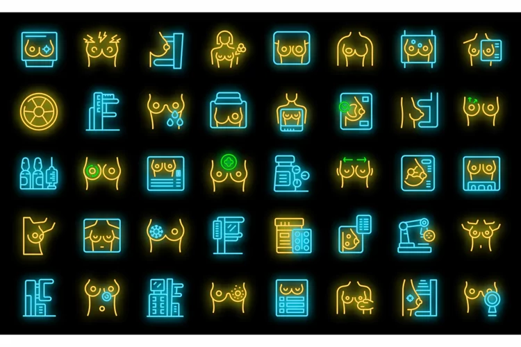 Mammogram icons set vector neon example image 1