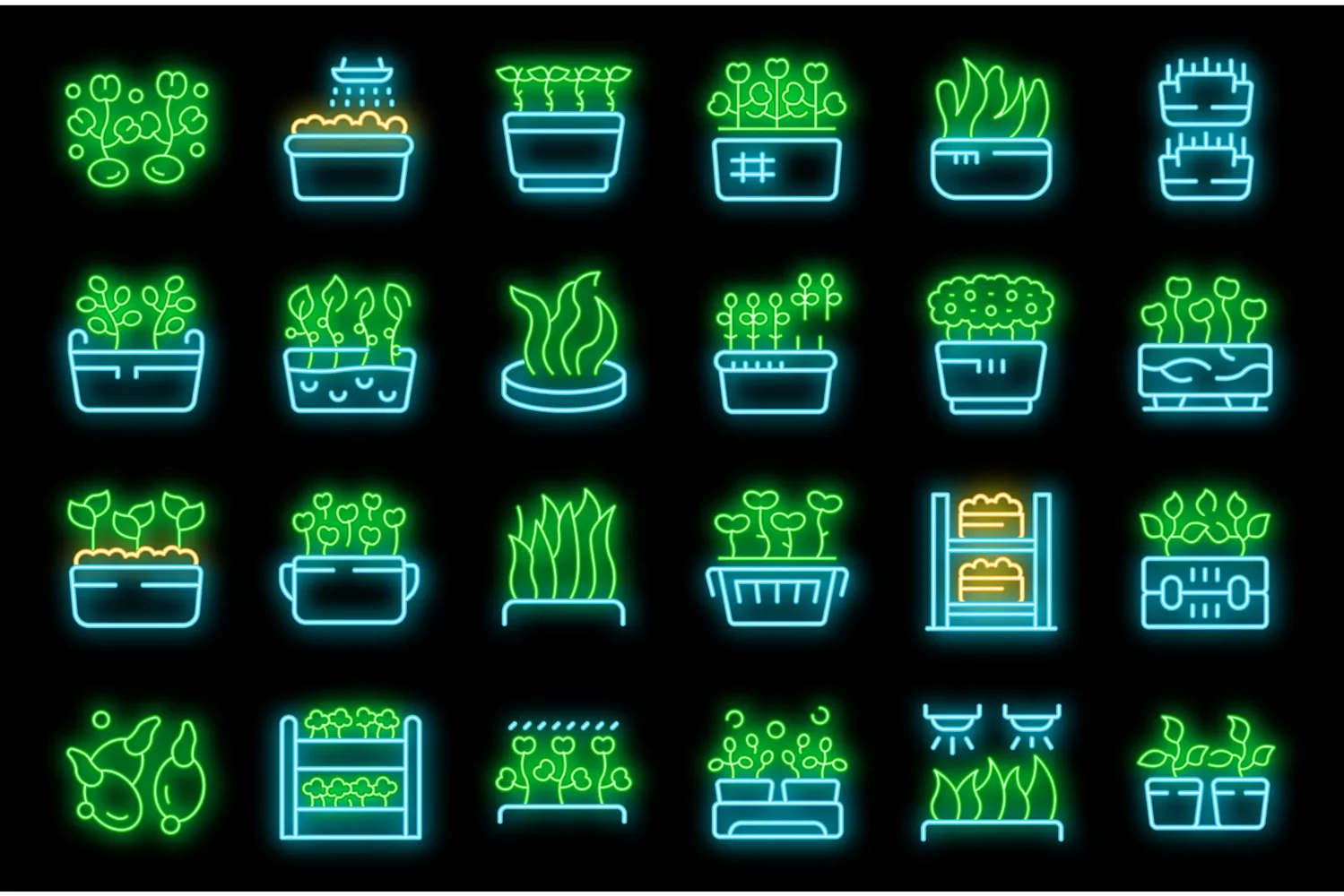 Growing microgreens icons set vector neon example image 1