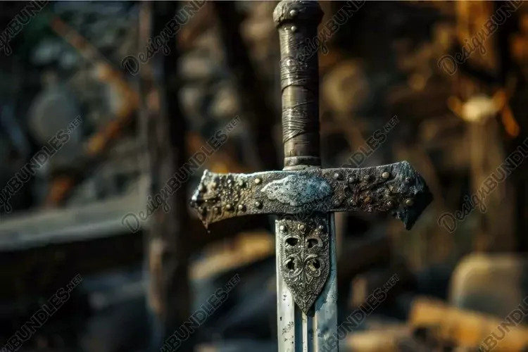 Vintage Antique Design Ornate Background Sword Up Blurred Intricate Close