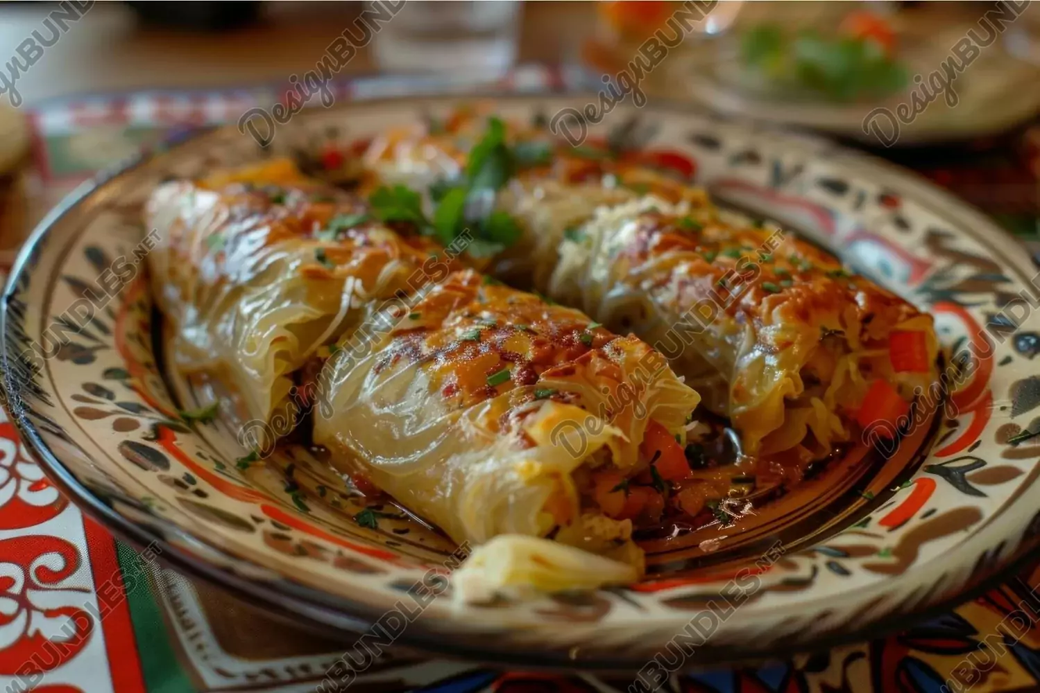 Similar Design Products to Cabbage rolls stuffed with minced meat and rice, lying on a