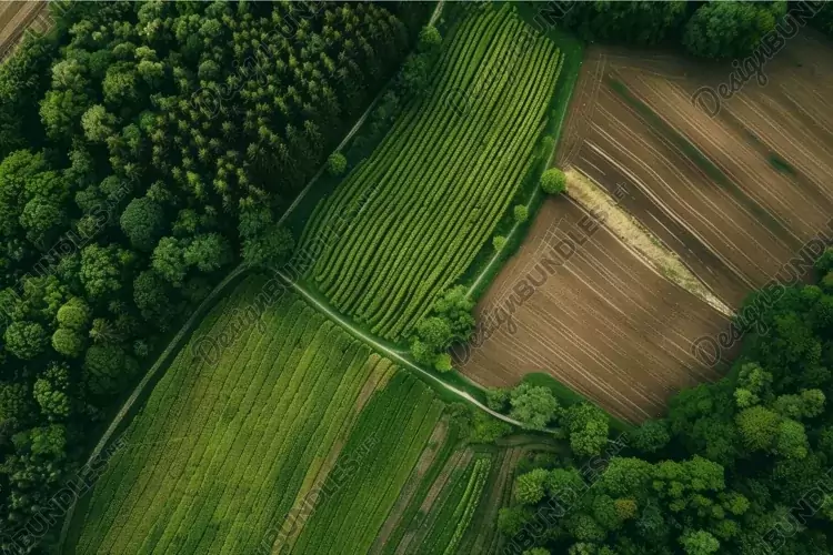 Green Landscape Top Agriculture View Aerial Down Rural Fields Farmland