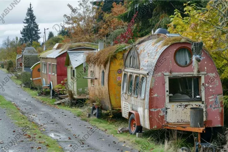 Colorful tiny homes forming an off grid community