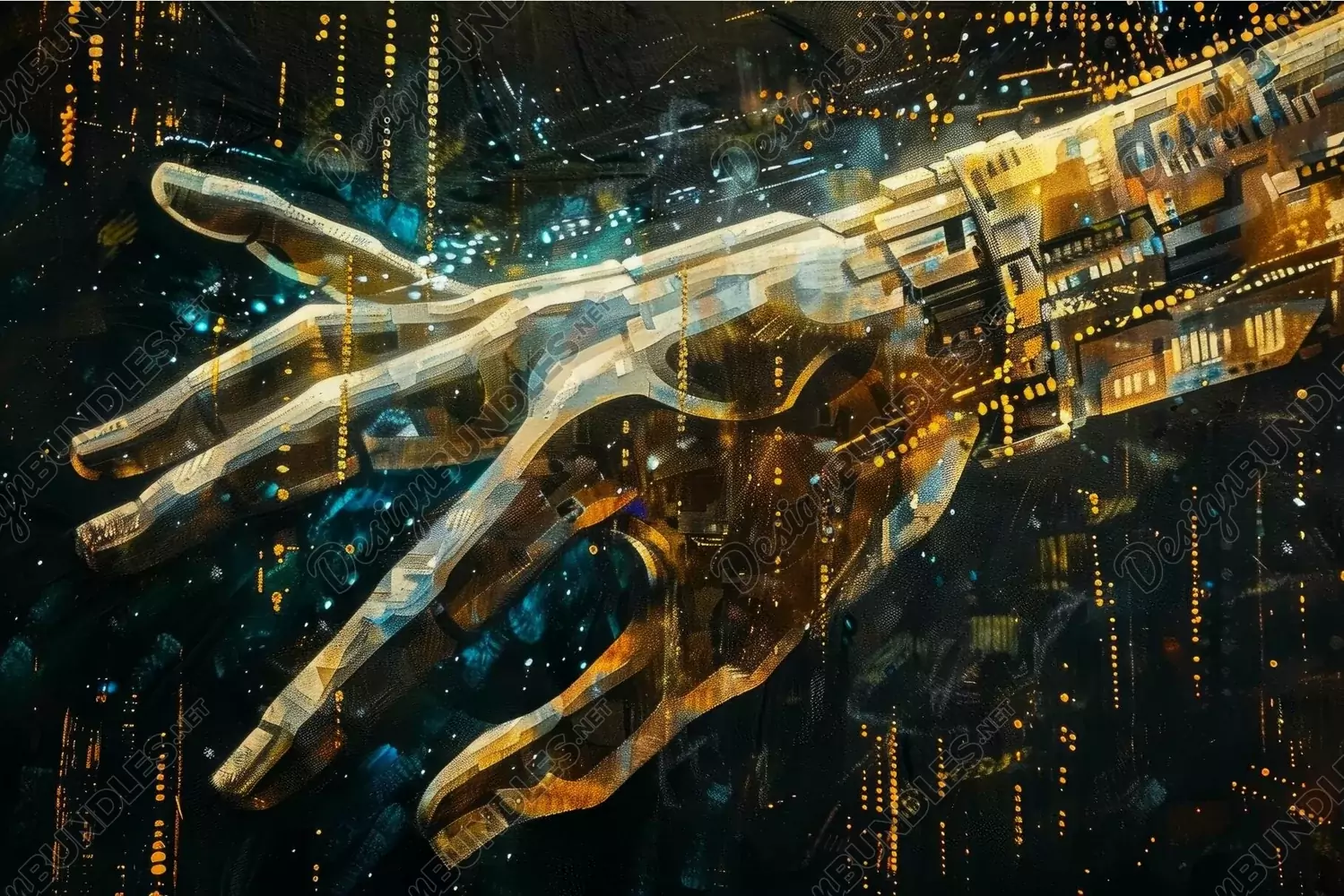 Similar Design Products to Robotic hand reaching out in futuristic technological citysc