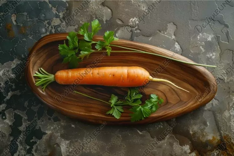 Similar Design Products to Single fresh carrot lying on wooden plate with parsley