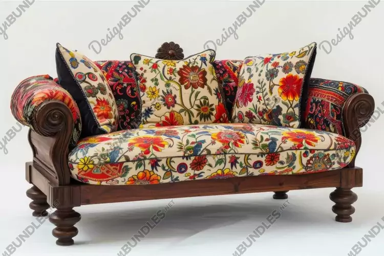 Similar Design Products to Wooden sofa with floral upholstery and cushions standing on