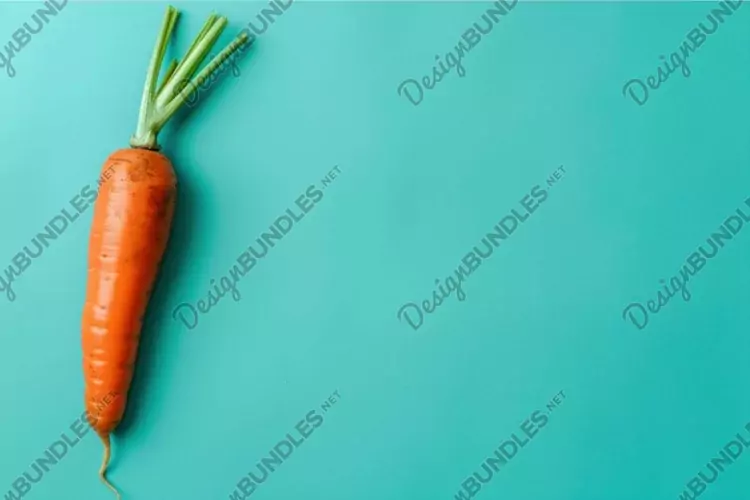 Fresh single carrot lying on minimalist turquoise background example image 1