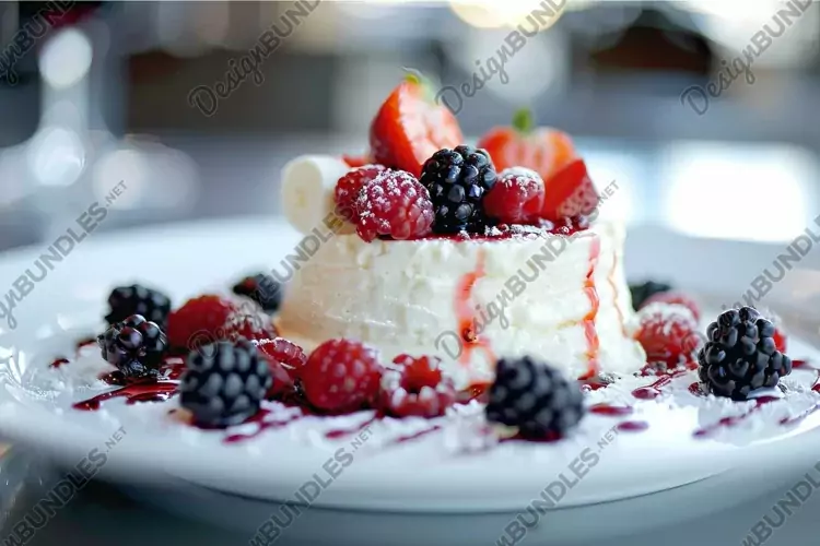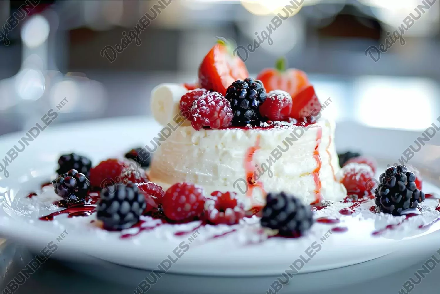 Similar Design Products to Delicious dessert with berries and cream being served on whi