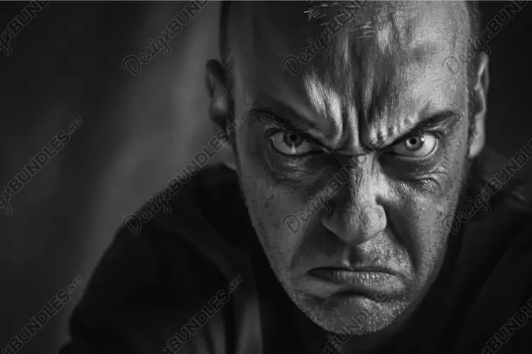 Man Angry Monochrome Male Portrait Up Expression Close Intense Scowl