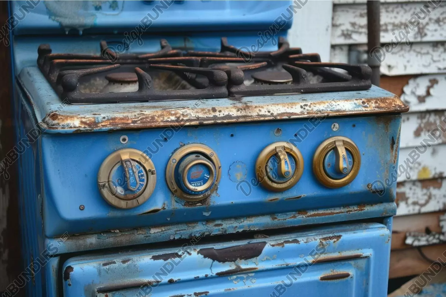 Vintage Paint Old Weathered Kitchen Stove Appliance Gas Rust Peeling