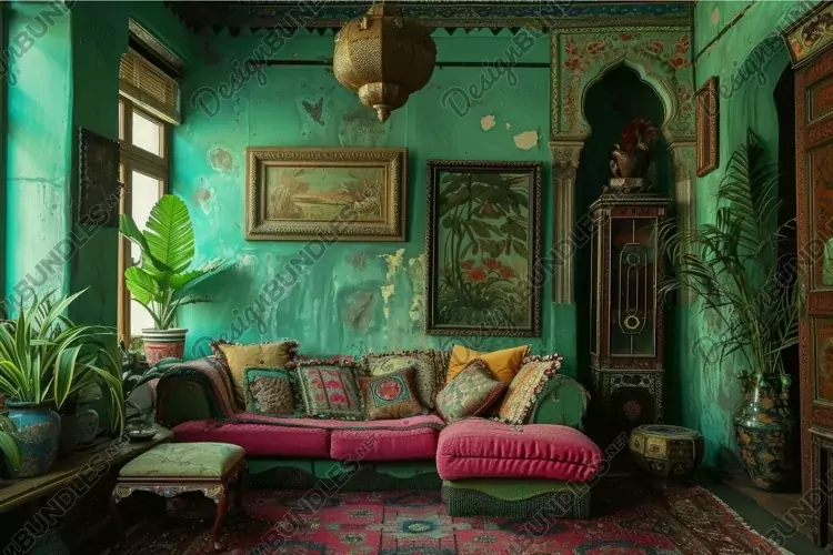 Vintage Antique Interior Vibrant Decor Colors Bohemian Living Room Eclectic