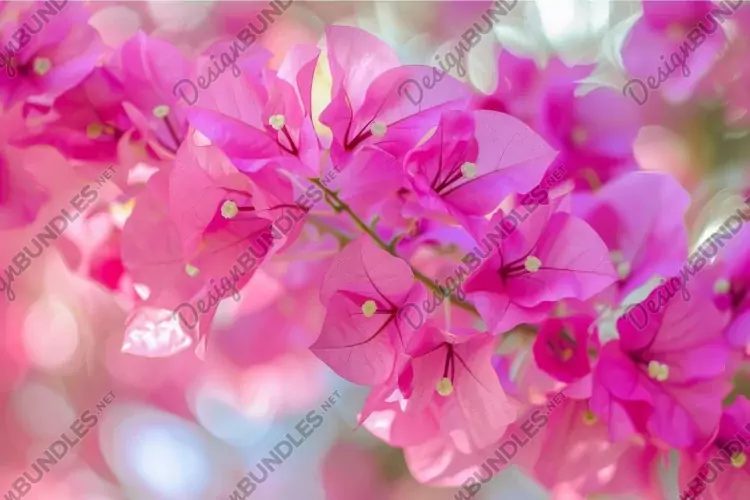 Close-up of bright pink bougainvillea flowers blooming with a dreamy, blurred background