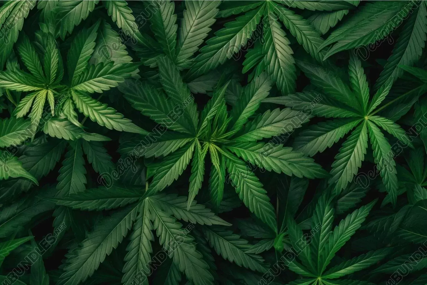Top view of vibrant green cannabis leaves covering the entire frame, creating a seamless natural pattern
