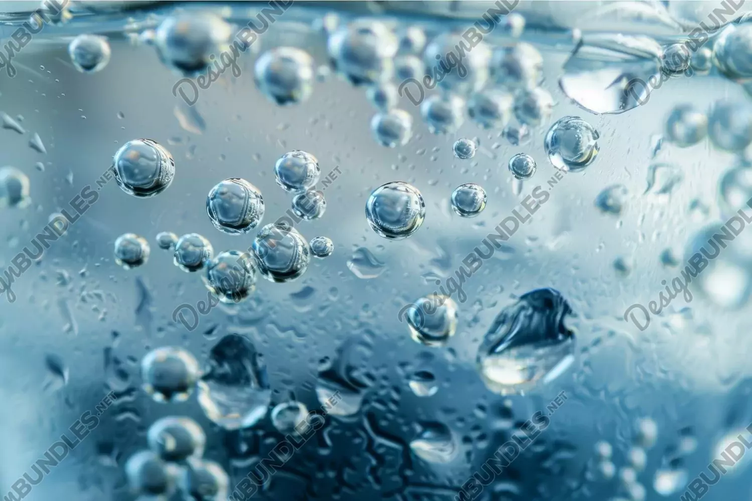 Closeup of air bubbles in water with a dreamy blue backgroun example image 1