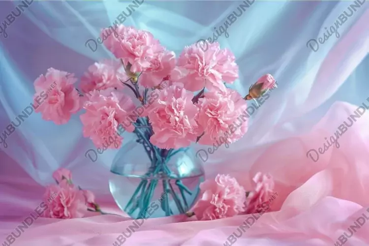 Similar Design Products to Elegant pink carnations in vase on draped silk
