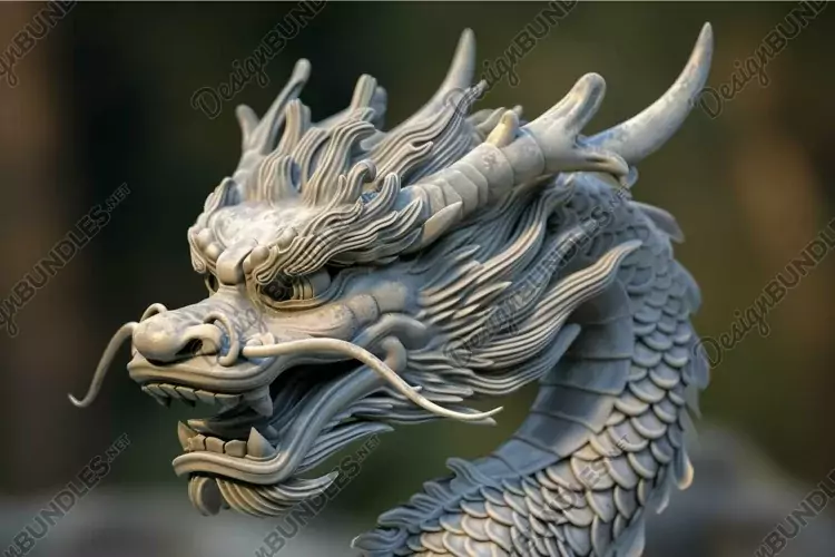 Majestic Detailed Head Creature Dragon Up Sculpture Statue Mythical Close