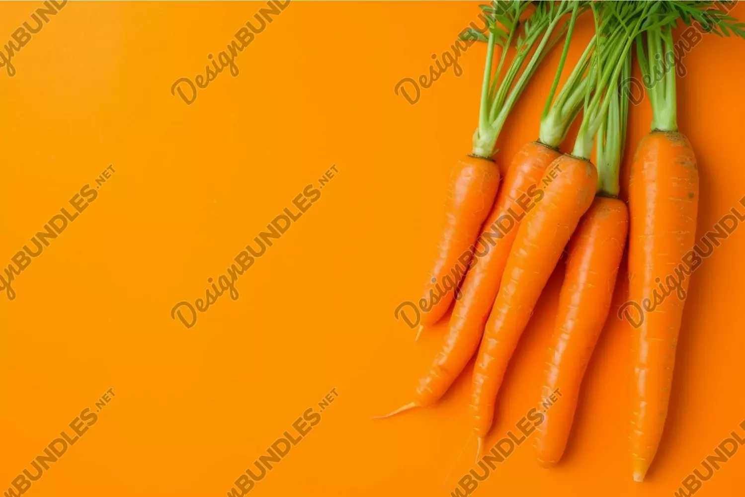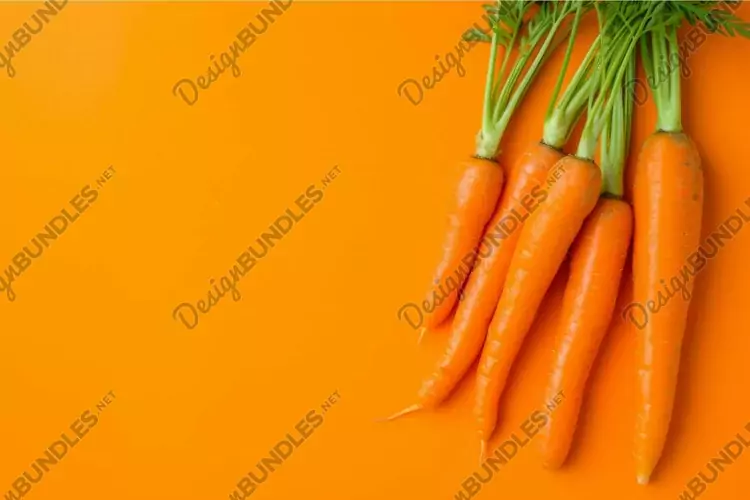 Vibrant carrots with green tops on a bright orange backdrop