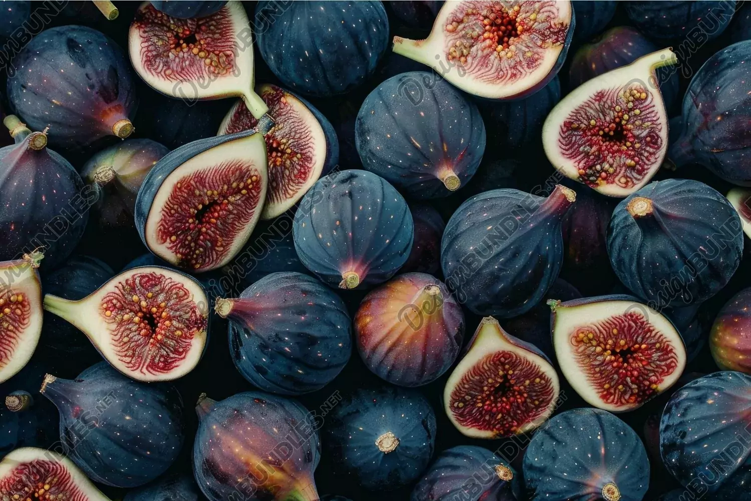 Freshly cut fig collection on dark background example image 1