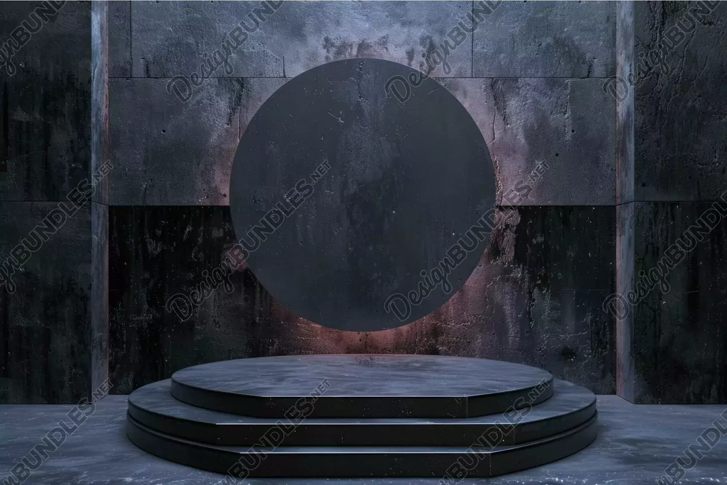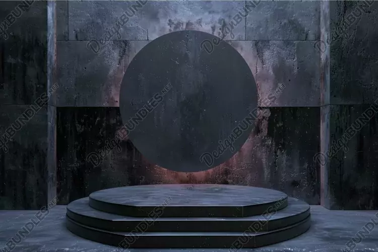 Empty round stage with a dark, textured backdrop, ideal for product displays