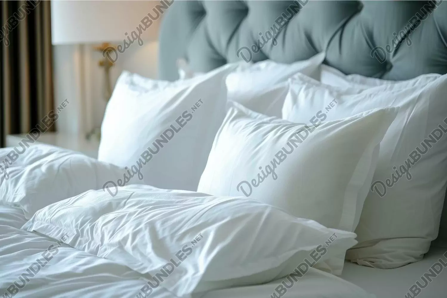 Elegance Luxury White Pillows Bed Comfort Bedroom Crisp Sheets Bedding
