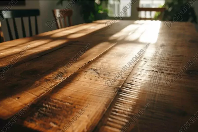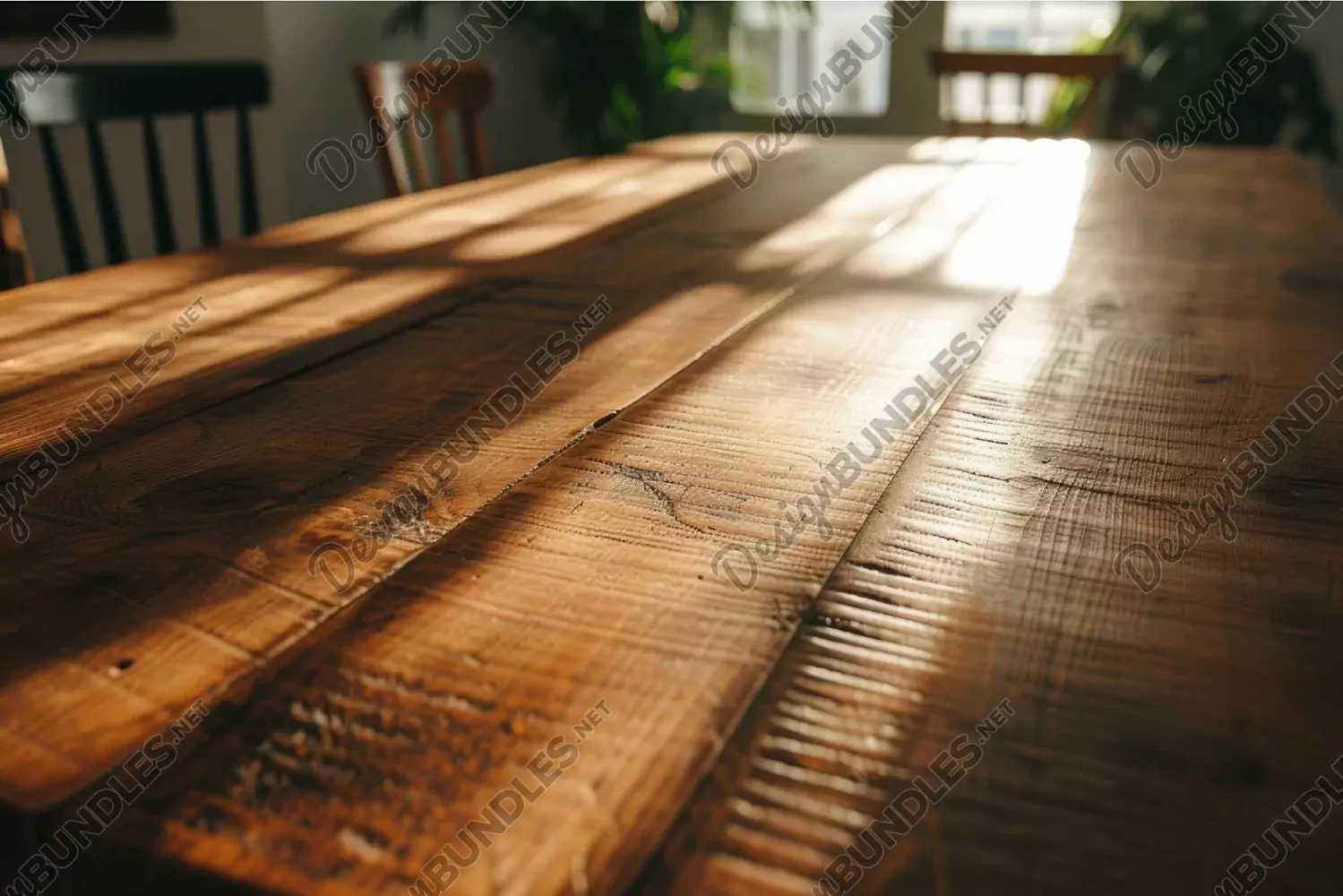 Rustic Textured Golden Wooden Warm Glow Table Shadows Sunlight Hour