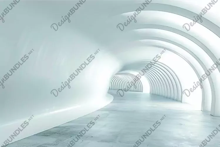 Modern minimalistic corridor with seamless white curves and a bright, airy feel