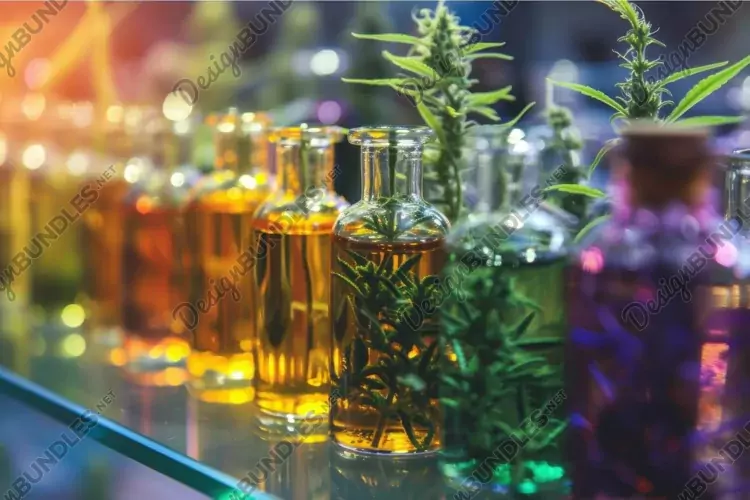 Similar Design Products to Essential oil bottles with herbs on vibrant background