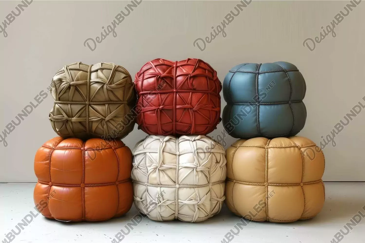 Modern Contemporary Design Colorful Interior Decor Home Furniture Leather Poufs