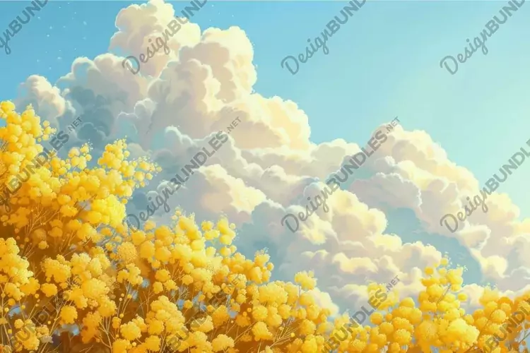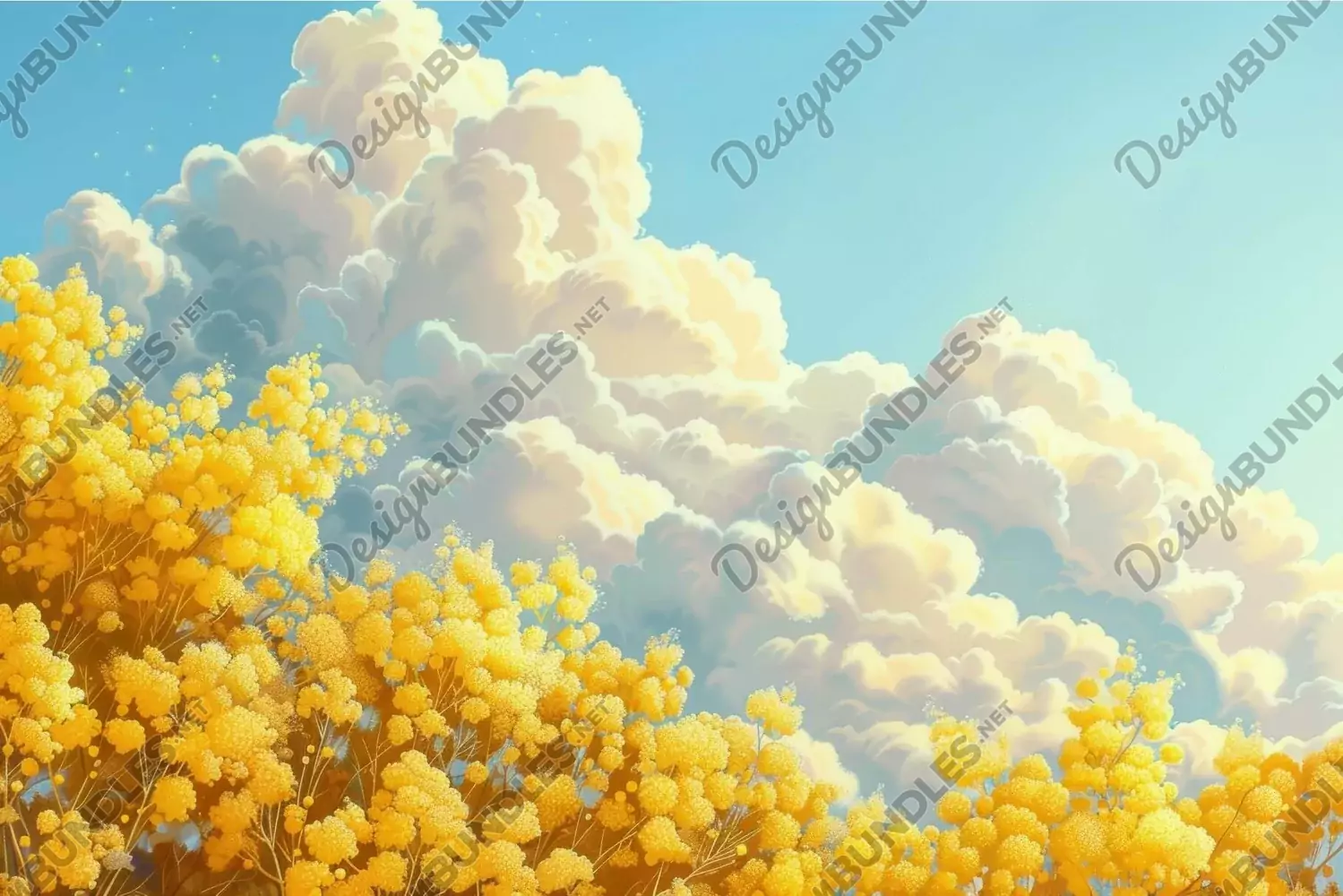 Similar Design Products to Golden wattle trees with fluffy clouds background