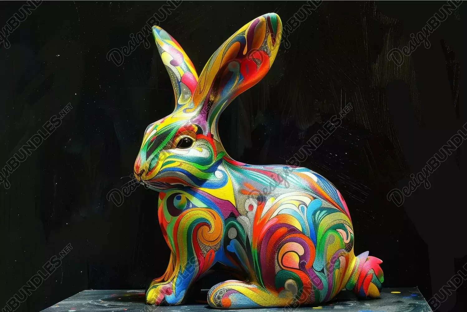Vibrant sculpture of a rabbit with intricate patterns agains example image 1