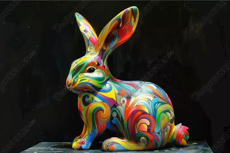 Similar Design Products to Vibrant sculpture of a rabbit with intricate patterns agains