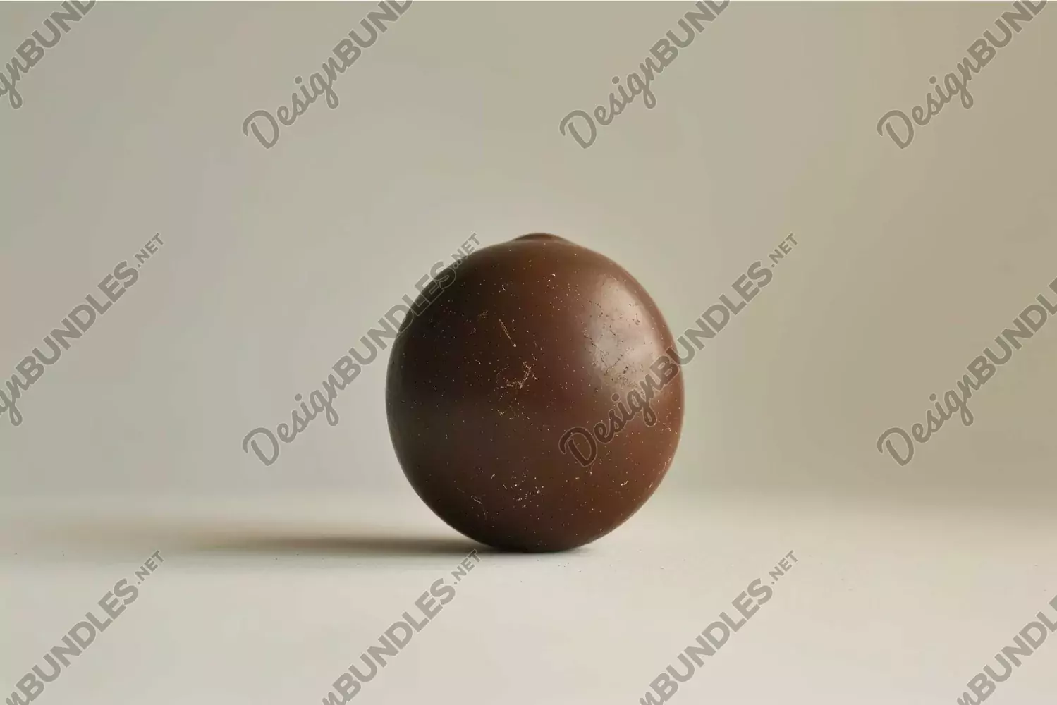 Minimalist image of a round chocolate truffle centerfocused on a soft beige backdrop