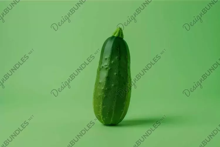 Single fresh cucumber stands against a vivid green backdrop, showcasing its color and texture