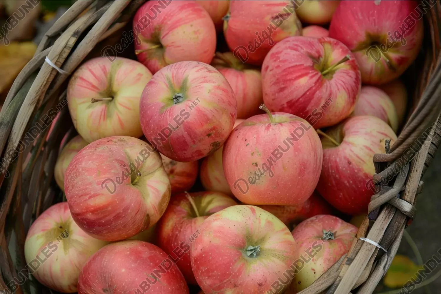 Basket full of ripe, red apples with a hint of green, freshly harvested and ready for sale