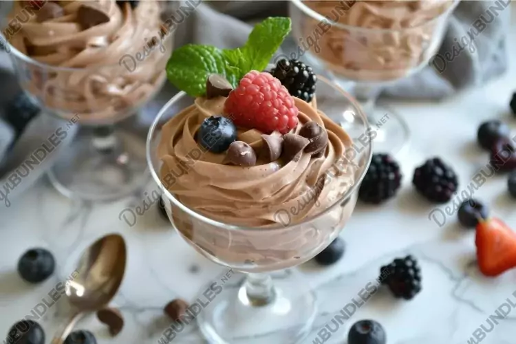Similar Design Products to Chocolate mousse being served in fancy glass with fresh berr