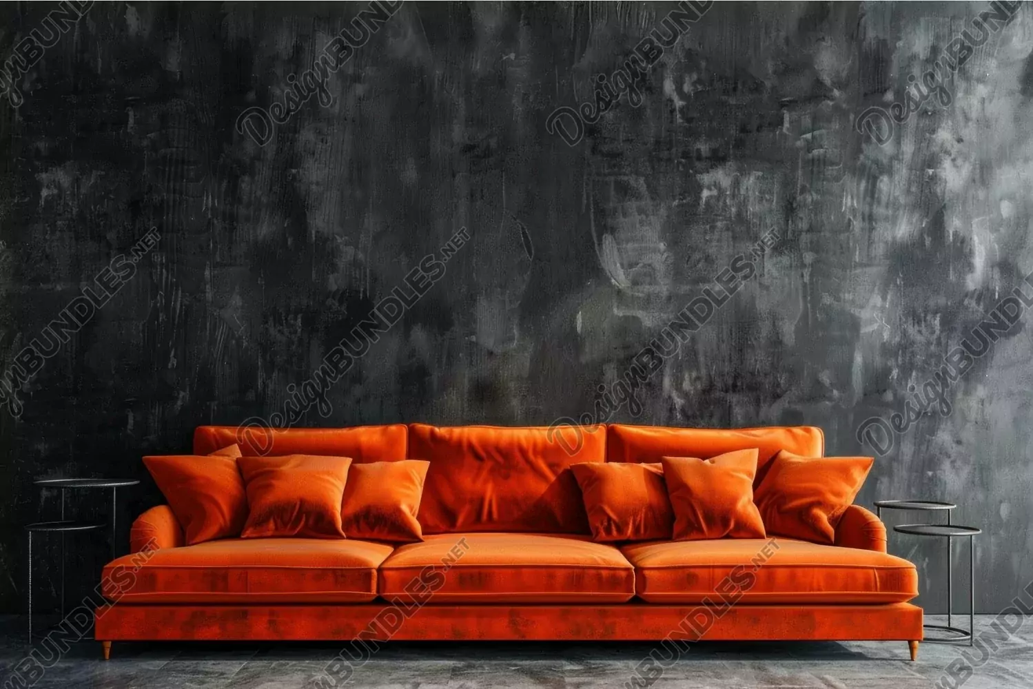Modern Black Design Interior Wall Orange Home House Apartment Sofa