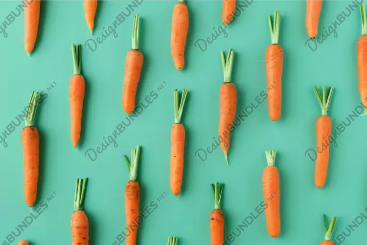 Fresh orange carrots forming a pattern on turquoise backgrou example image 1