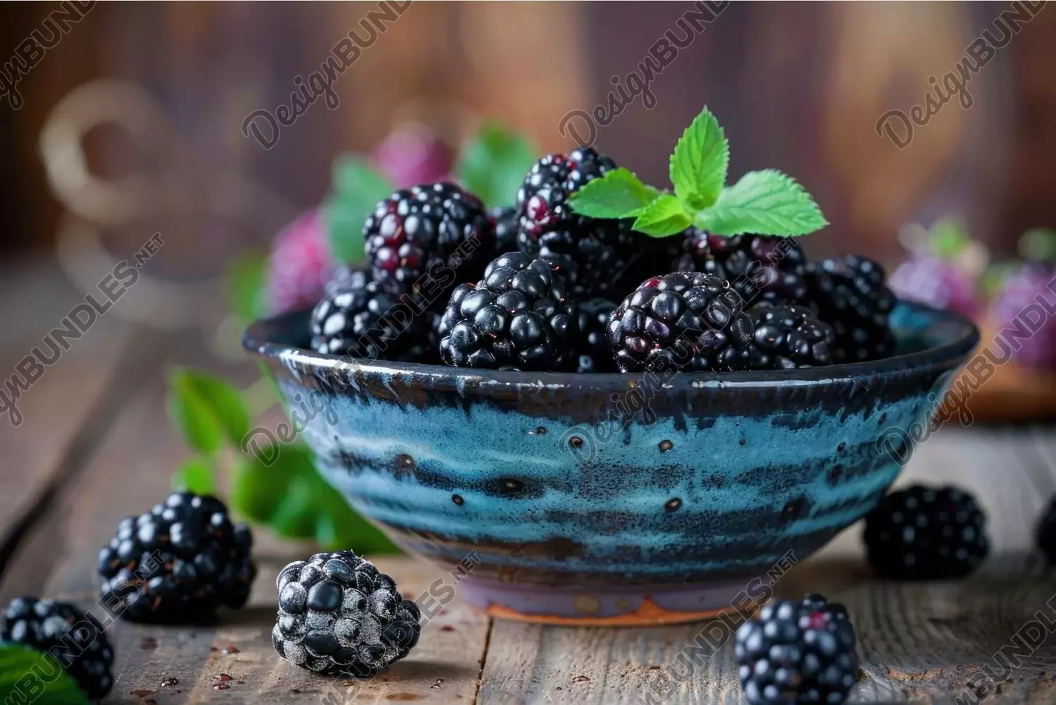 Similar Design Products to Fresh blackberries overflowing in rustic blue bowl on wooden