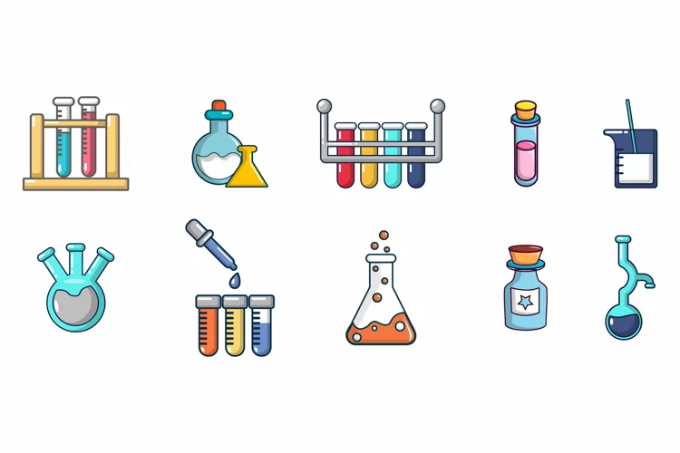 Cartoon Vector Icon Experiment Set Equipment Glass Bottle Chemistry Chemical