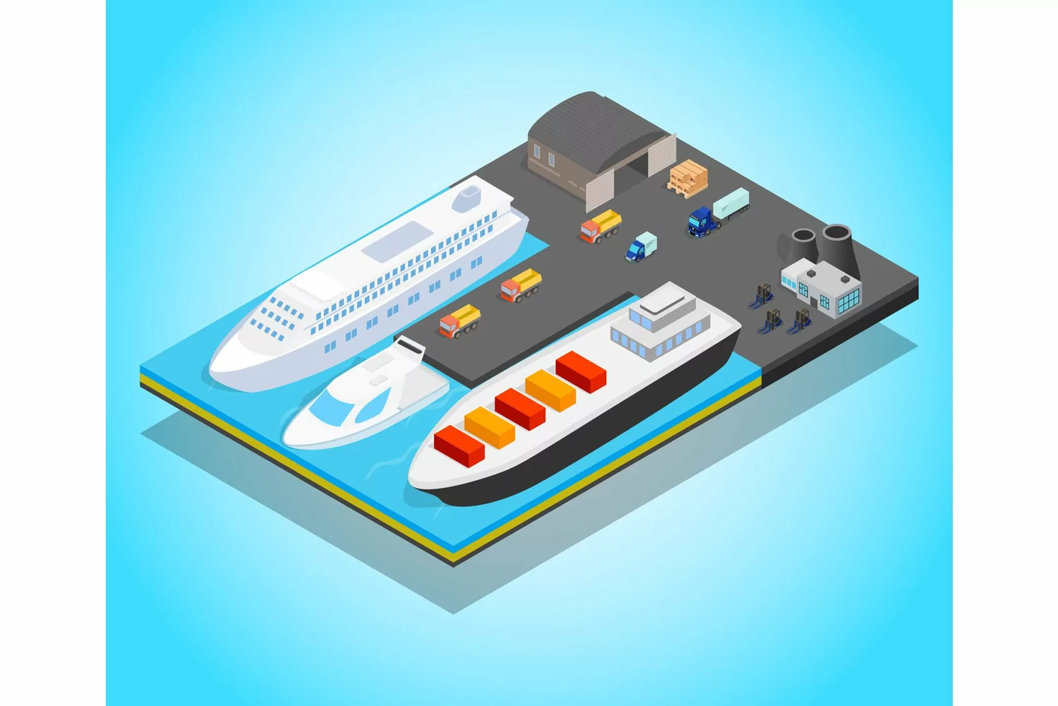Pier concept banner. Isometric banner of pier vector concept for web, giftcard and postcard