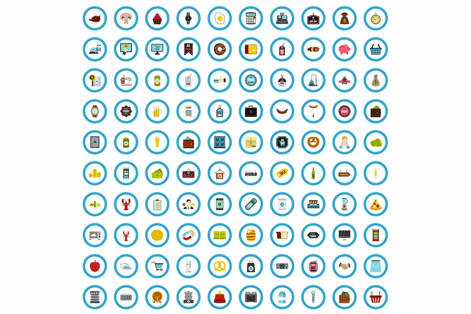 100 buying icons set, flat style example image 1