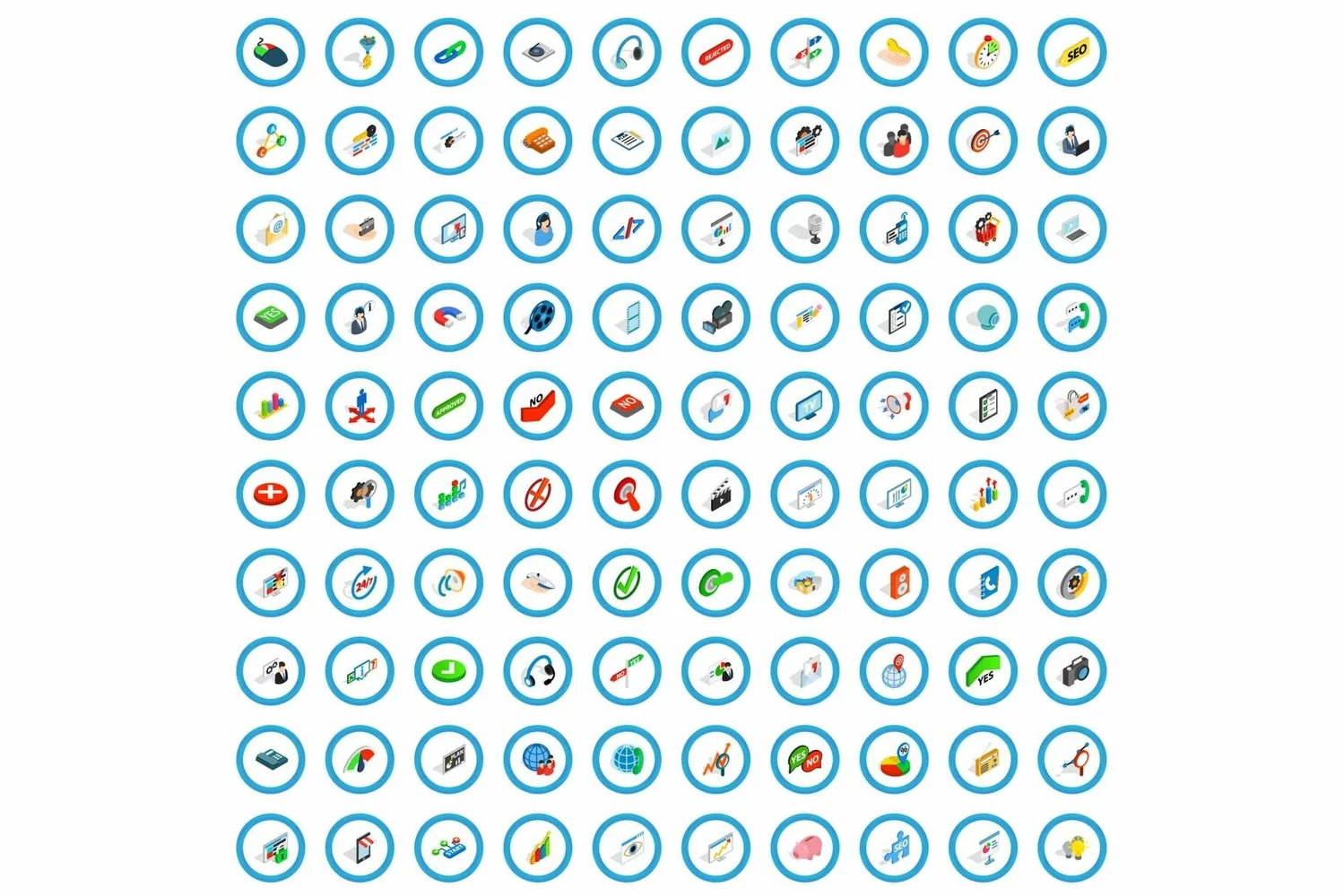 Similar Design Products to 100 faq icons set, isometric 3d style