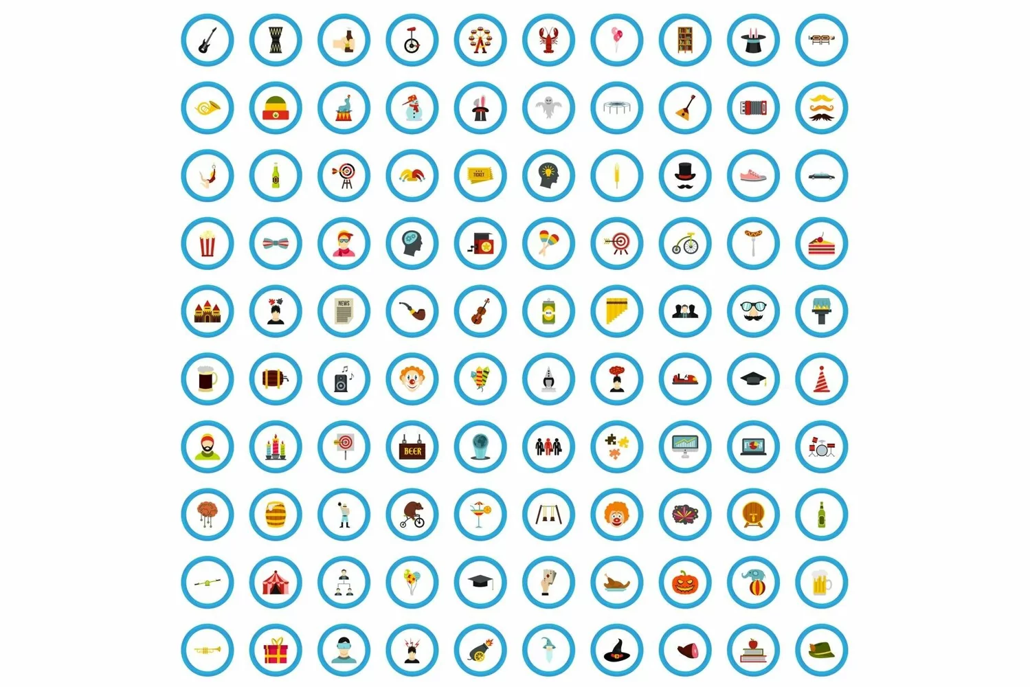 100 fete brainstorm icons set in flat style for any design vector illustration