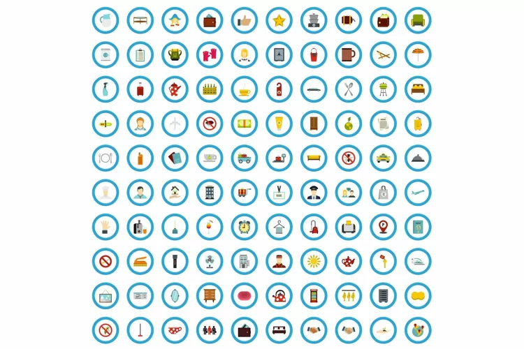100 hospitality icons set in flat style for any design vector illustration