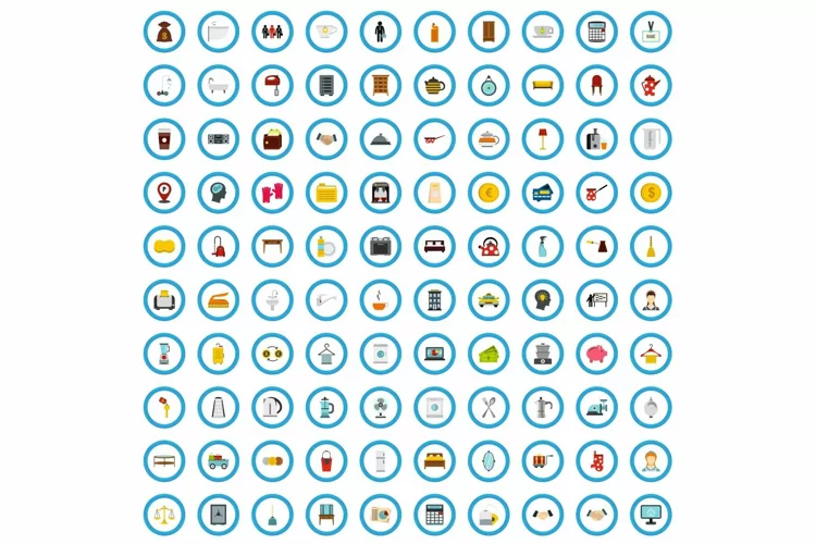 100 hospitality business icons set in flat style for any design vector illustration