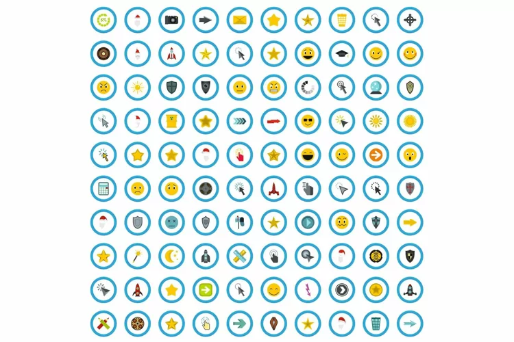 100 interface pictogram icons set, flat style