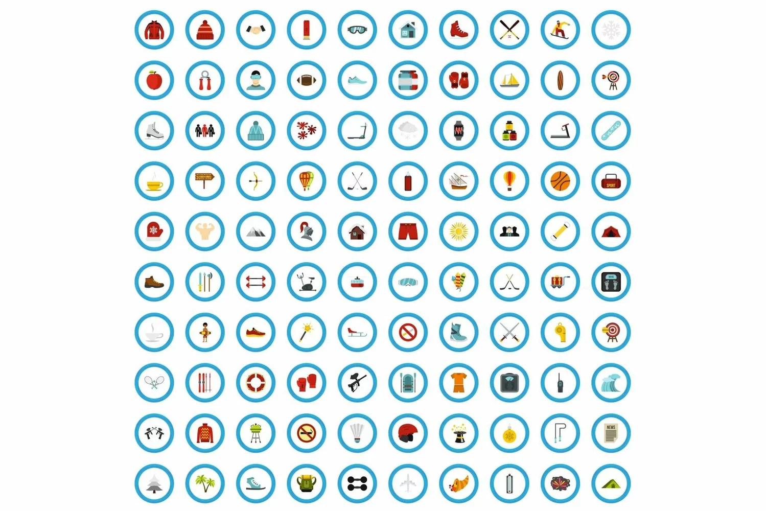 Similar Design Products to 100 leisure excellence icons set, flat style