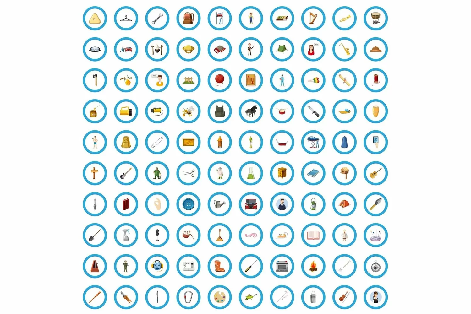 100 metier icons set in cartoon style for any design vector illustration