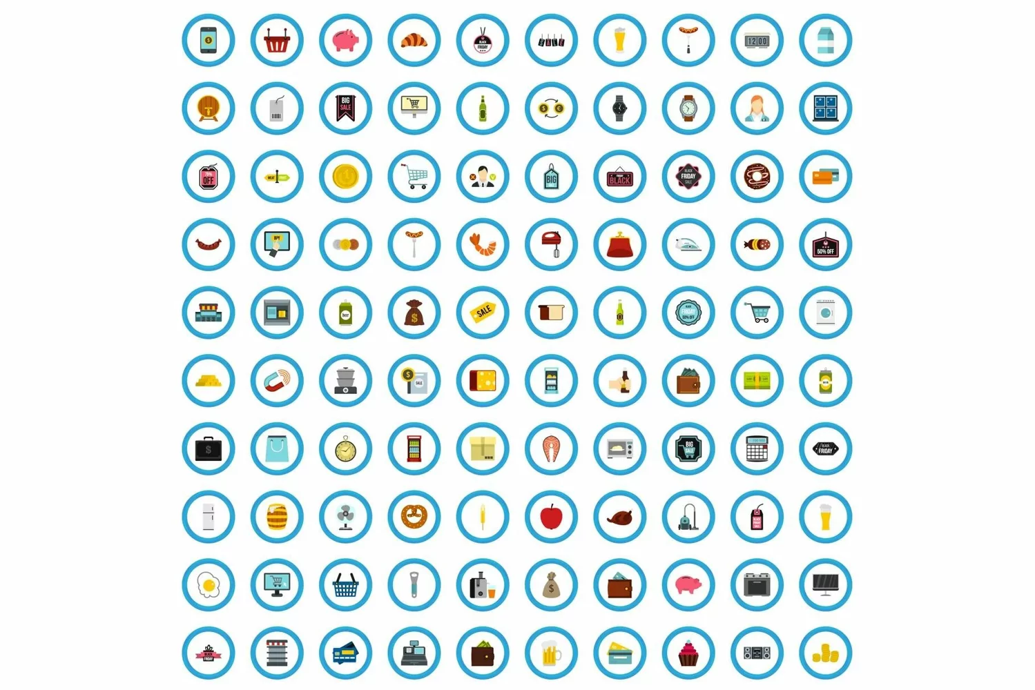 Similar Design Products to 100 purchasing icons set, flat style
